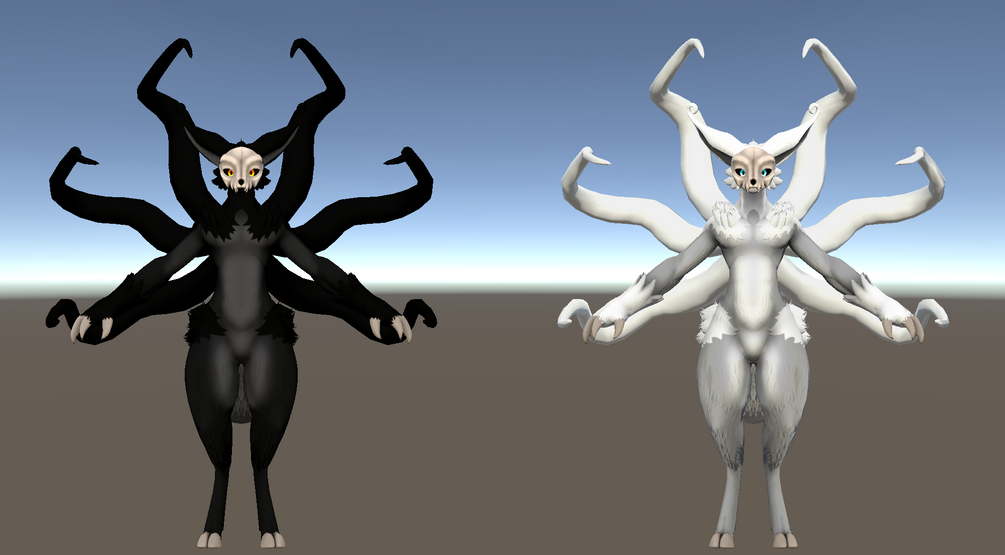 A spooky anthro avatar with unity setup, and associated substance painter and photoshop files