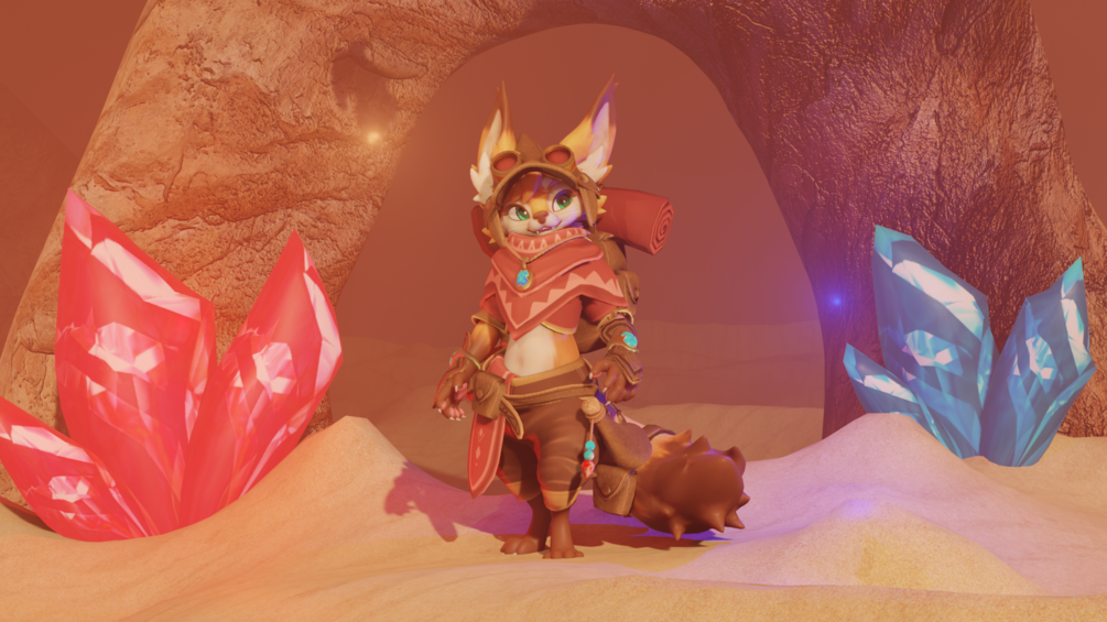 The Vulfen are a largely nomadic species of small fox that wander the vast deserts of the Shattered Sands! Many Vulfen find themselves moving from Oasis village to Oasis village, and even to the great city of Citrinor itself, peddling wares they collect along the way. Related to their much taller cousins to the north, the Kyuulin, the Vulfen are much shorter of stature, although one would be wise to omit this fact when talking to them, if one values their ankles.